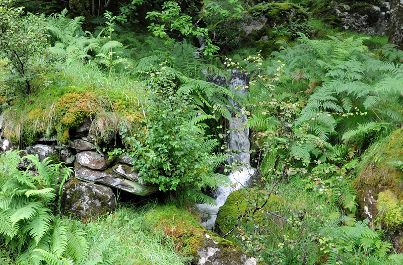 We besluiten een stuk te gaan rijden, naar het zuiden, richting Dolgellau. Daar zijn we nog helemaal niet geweest en we hebben een wandelroute in de buurt in het boekje. Maar hoe verder we die kant op gaat, hoe meer het weer gaat lijken op dat van gister. Jammer want hierdoor is de omgeving niet goed te zien. Wat wel opvalt is dat alle beekjes, stromen en rivieren zeer vol zijn en hier en daar buiten hun oevers treden. Al dat water wat gevallen is moet ergens naar toe.