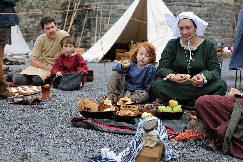 Op de kade aangekomen blijkt er van alles te zien. Er is een grote groep historic reenactment lui die een Keltisch/Middeleeuws kampement hebben opgebouwd. In behoorlijk authentiek uitziende outfits wordt er gevochten, gekookt, gewoven enz. Het is erg tof! Ik als geschiedenis, fantasy en bushcraft liefhebber was er niet weg te slaan..